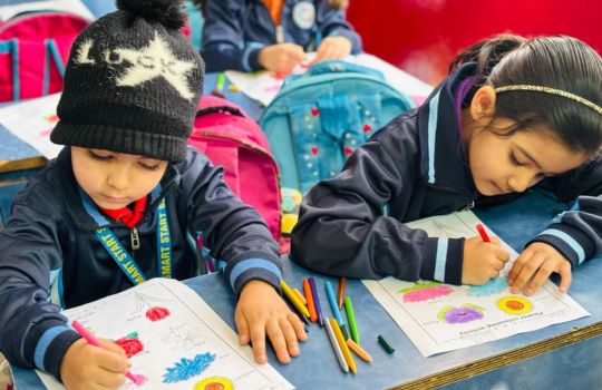 Young learners are not loaded with abstract ways of teaching which kill the joy of learning; instead, all concepts and skills are taught in a context that is familiar, meaningful and relevant to them in their routine experiences. For example, counting and sorting is incorporated into games using fruits, vegetables and crayons or erasers.